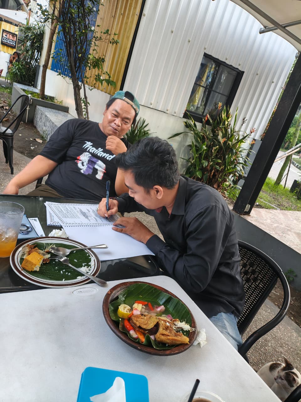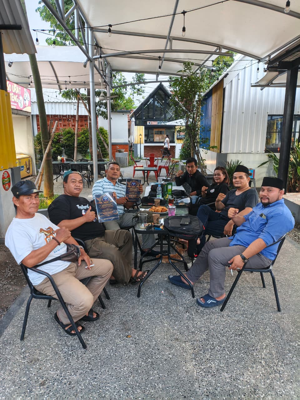 Media Center - www.bppkbkotang.org - Kota Tangerang - Jajaran pengurus DPC BPPKB Banten Kota Tangerang menerima kunjungan silaturahmi dari Ketua Ranting Petir, Tubagus Ahmad Yani, dan Ketua Ranting Ketapang, M. Isnaini Koto, yang turut didampingi oleh Ketua DPAC BPPKB Banten Kecamatan Cipondoh, Nur Kasan Abel. Kegiatan berlangsung hangat dan penuh kekeluargaan di Teras Benteng Cafe Sambel Jurig, kawasan Stadion Benteng, Kota Tangerang. (16/04/2026).